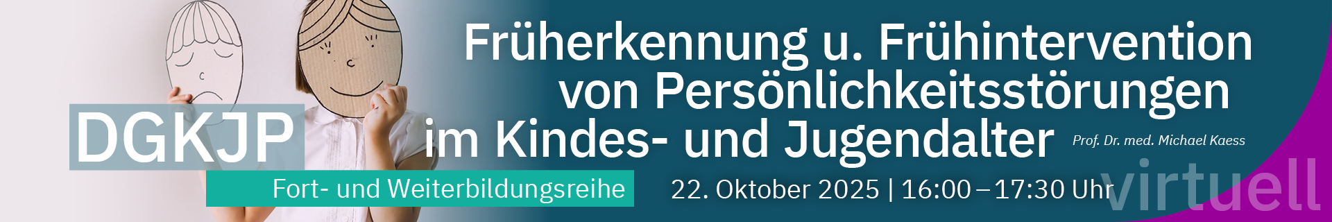 Die DGKJP bietet mit DGKJP Virtuell eine online-basierte Fort- und Weiterbildungsveranstaltungsreihe an, in der aktuelle Informationen zu häufigen Krankheitsbildern sowie wichtigen Gesetzen vermittelt werden.